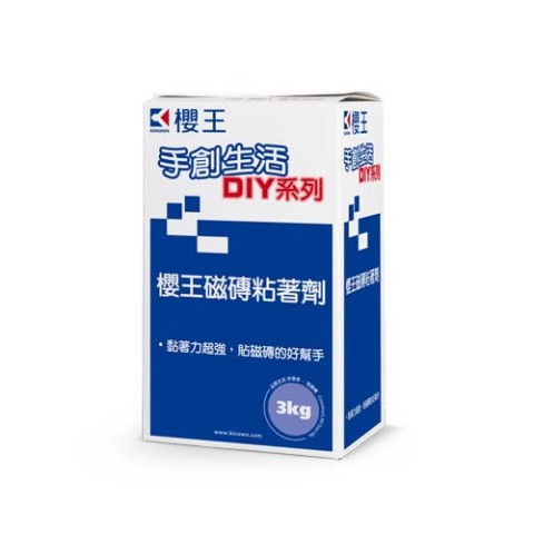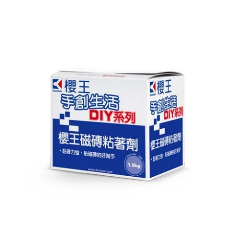 適用於黏貼二丁掛磁磚、30cmX30cm、50cmX50cm磁磚於室內外完成粗批的牆面。將1kg櫻王磁磚黏著劑加到0.3~0.35kg的水裡混合攪拌均勻。攪拌1分鐘後靜置3~5分鐘,再攪拌1分鐘後使用。