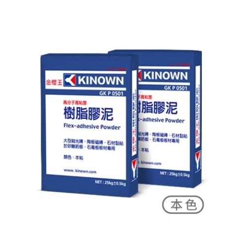 金櫻王樹脂膠泥是針對大型拋光磚、陶板、石材等特殊磁磚所研發的一種耐震彈性粘著劑,其添加進口聚合物樹脂,可黏貼磁磚於各類底材特別是矽酸鈣板或石膏板。其品質符合CNS12611規範。