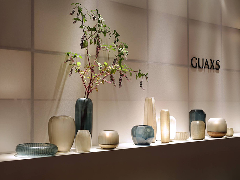 德國 GUAXS 透過對生活的密切觀察融合自然美學及文化根本作為設計靈感,以頂級玻璃工藝製造富有古今藝術交匯風貌的擺飾藝品,用直觀而有意識的設計手法體現在玻璃器皿的設計上,色調上內斂富有層次,造型中透過切硝的不同工法來呈現作品的獨特花紋,致力為空間佈置帶來全新的觀感體驗,卻不失生活應有的氣息和氛圍,因此在當代中成就了非凡的美學意義和藝術層級。