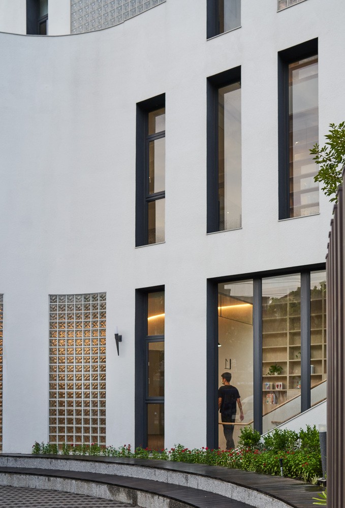 玻璃磚的通透日光、寬敞的迴盪氣流,帶著書籍跟著空間一起閒靜下來
