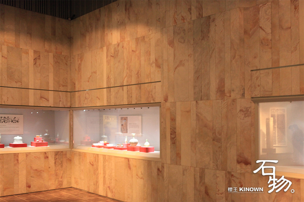 在紀念館中真實還原地下宮殿的文化,地宮入口處以赤岩花色石物設計,赤色的石材和櫃台至內部展區層層呼應,帶出典雅莊重的氣息。